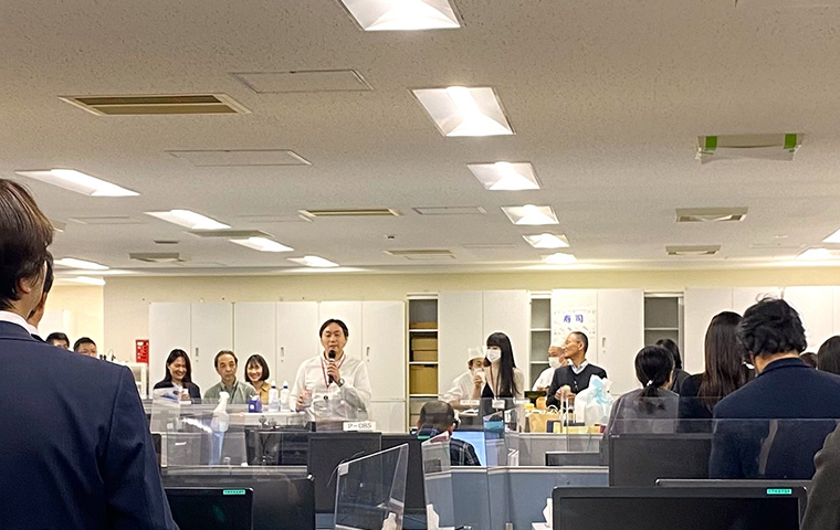 - 本グループは、健康経営施策の拡大を図るために必要なメンバーを選任し、別途任命している健康経営推進委員と連携しながら全社横断で施策を牽引しています。また、取組み進捗および新たに発生した課題は健康経営推進会議のなかで議論を重ね、意見を施策に反映しています。