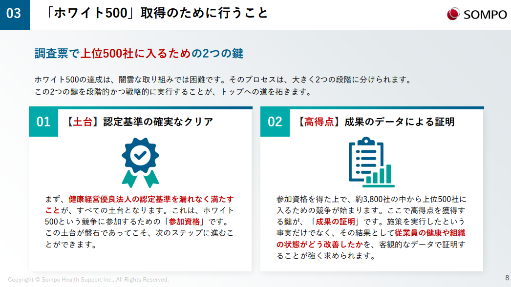 施策をこなすだけの健康経営ではなく、トップ500社に選ばれるための戦略的アプローチをご紹介します。